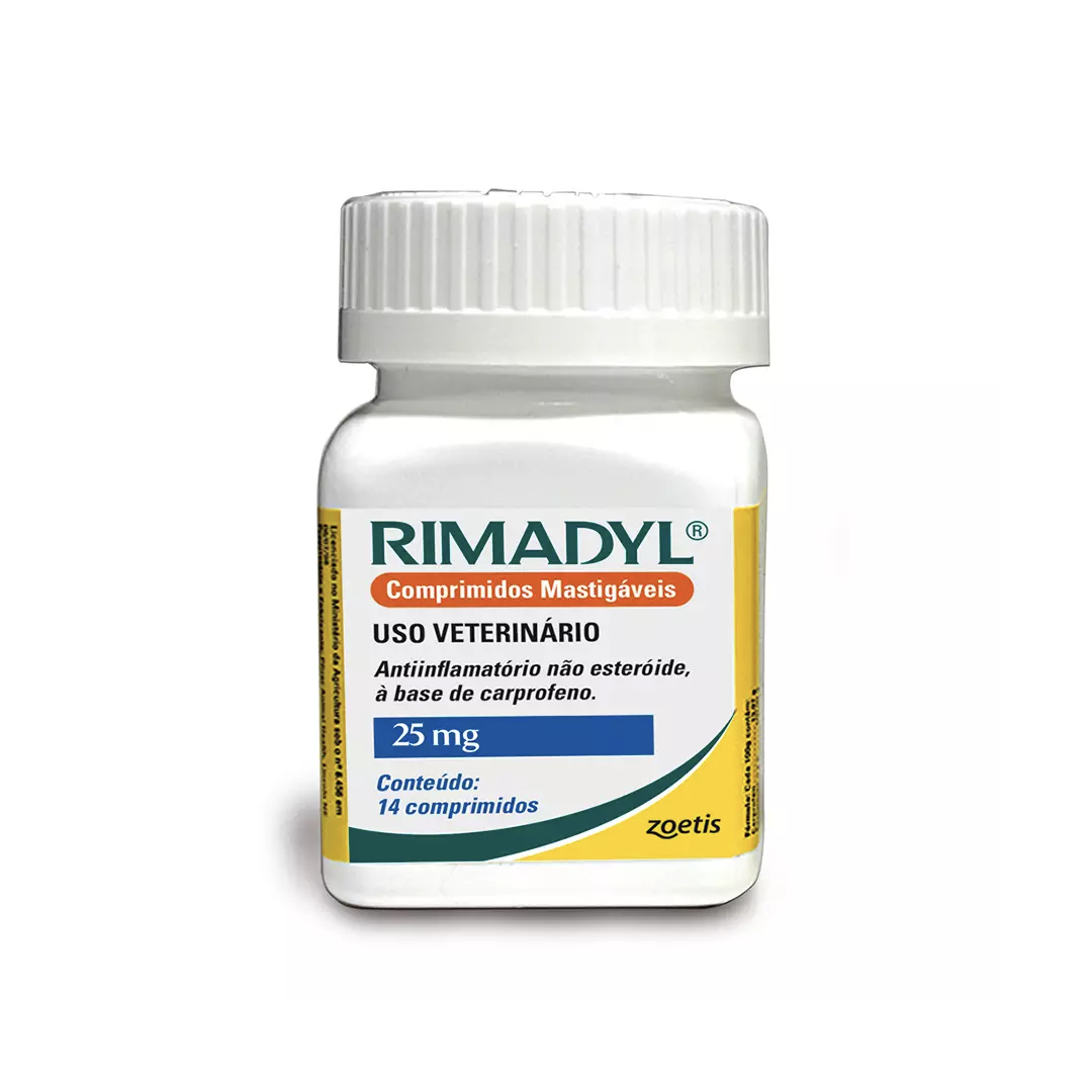 O Rimadyl é um agente não narcótico com atividade anti-inflamatório à base de carprofeno, além disso possui ação antipirética e analgésica e age rapidamente no organismo do seu pet controlando a dor associada a cirurgias ortopédicas e de tecido mole. Ele promove um controle seguro e eficaz da dor causada pela osteoartrite. Não esteroide comprovadamente seguro para uso prolongado em cães. É apresentado em comprimidos Palataveis mastigáveis a caixa contém 14 comprimidos.