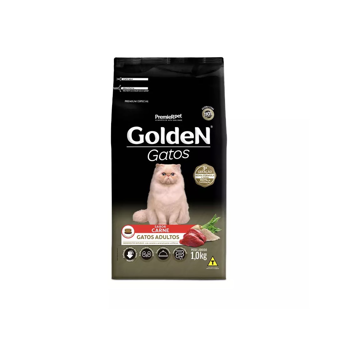 RAÇÃO GOLDEN GATOS ADULTOS CARNE