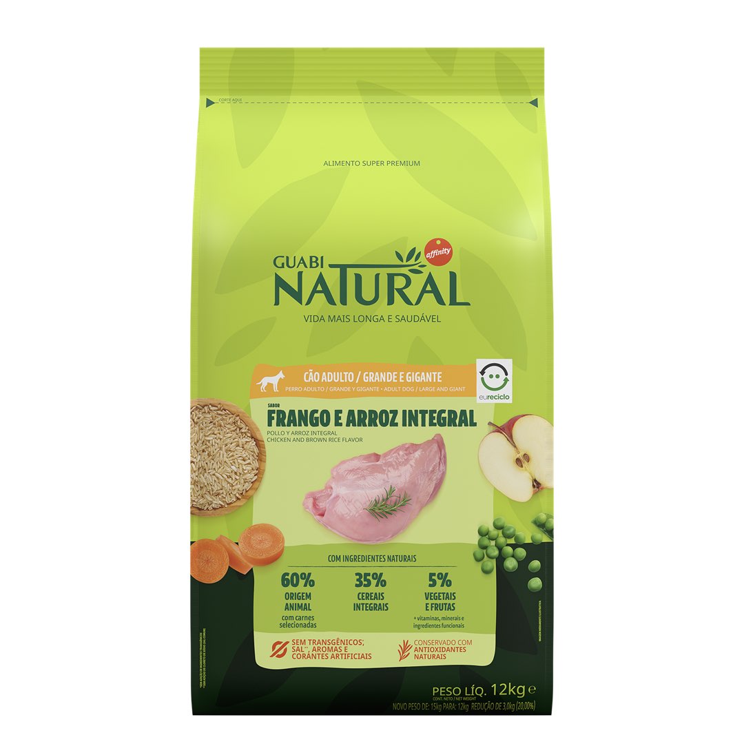 RAÇÃO GUABI NATURAL CÃO ADULTO GRANDE E GIGANTE FRANGO E ARROZ INTEGRAL