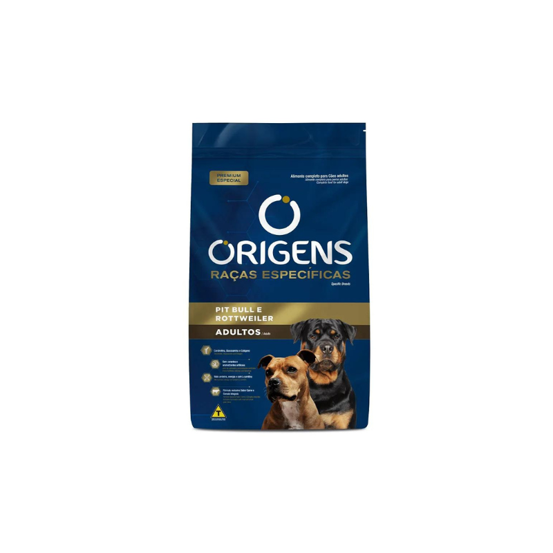 RAÇÃO ORIGENS CÃO ADULTO PIT BULL E ROTTWEILER 15KG