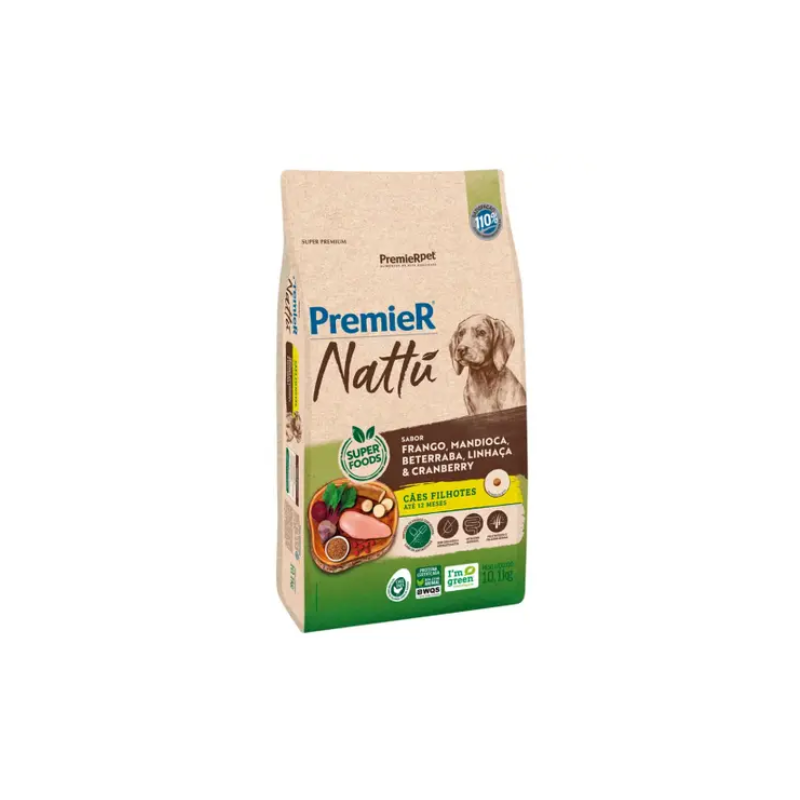 RAÇÃO PREMIER NATTU CÃES FILHOTES PORTE MÉDIO E GRANDE SABOR FRANGO E MANDIOCA Tamanho:10,1KG