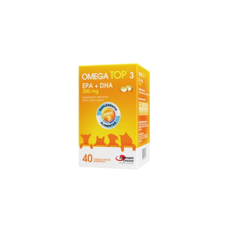 SUPLEMENTO PARA CÃES E GATOS OMEGA TOP 3 500 MG 40 CÁPSULAS