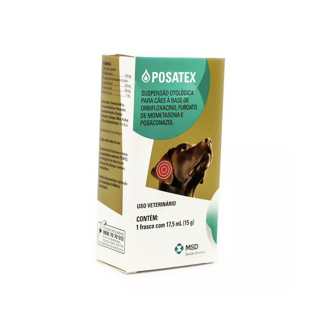 <p>Suspensão otológica para cães à base de Orbifloxacino, Furoato de mometasona e Posaconazol.</p>